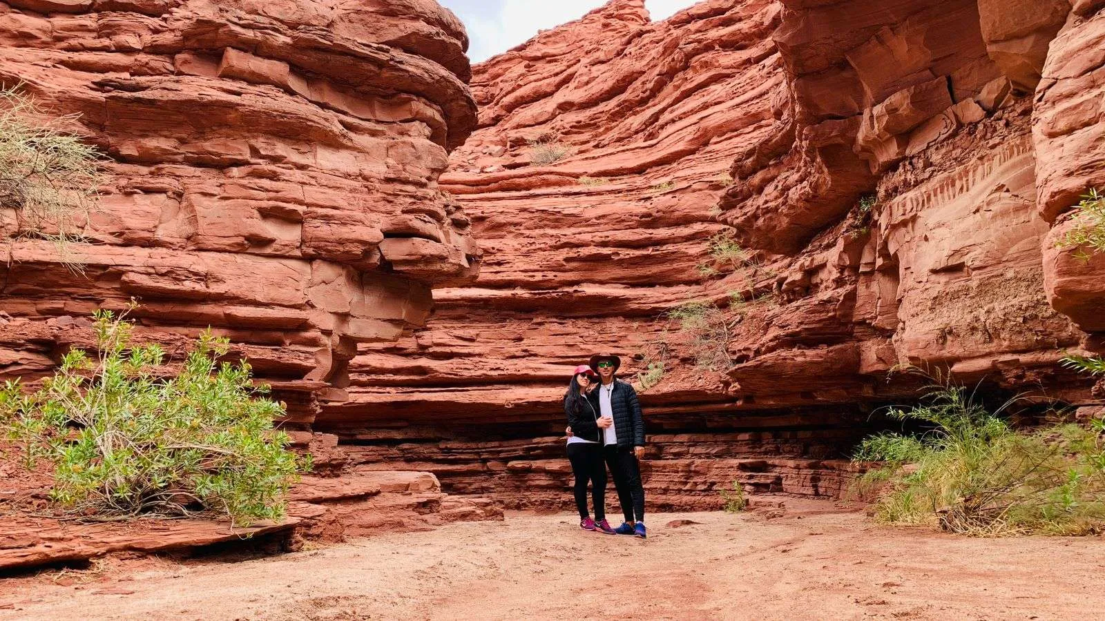 De regreso, cruzando algunos ríos y con lluvia de por medio llegamos al Cañon del Anchumbil. Es como una muestra gratis y más pequeña de lo que es Talampaya… Podes caminar por el medio del cañón, las vistas son hermosas y estabamos totalmente solos ya que es un lugar súper agreste y poco explotado. Es todo para disfrutar caminando, y viviendo de cerca la naturaleza.